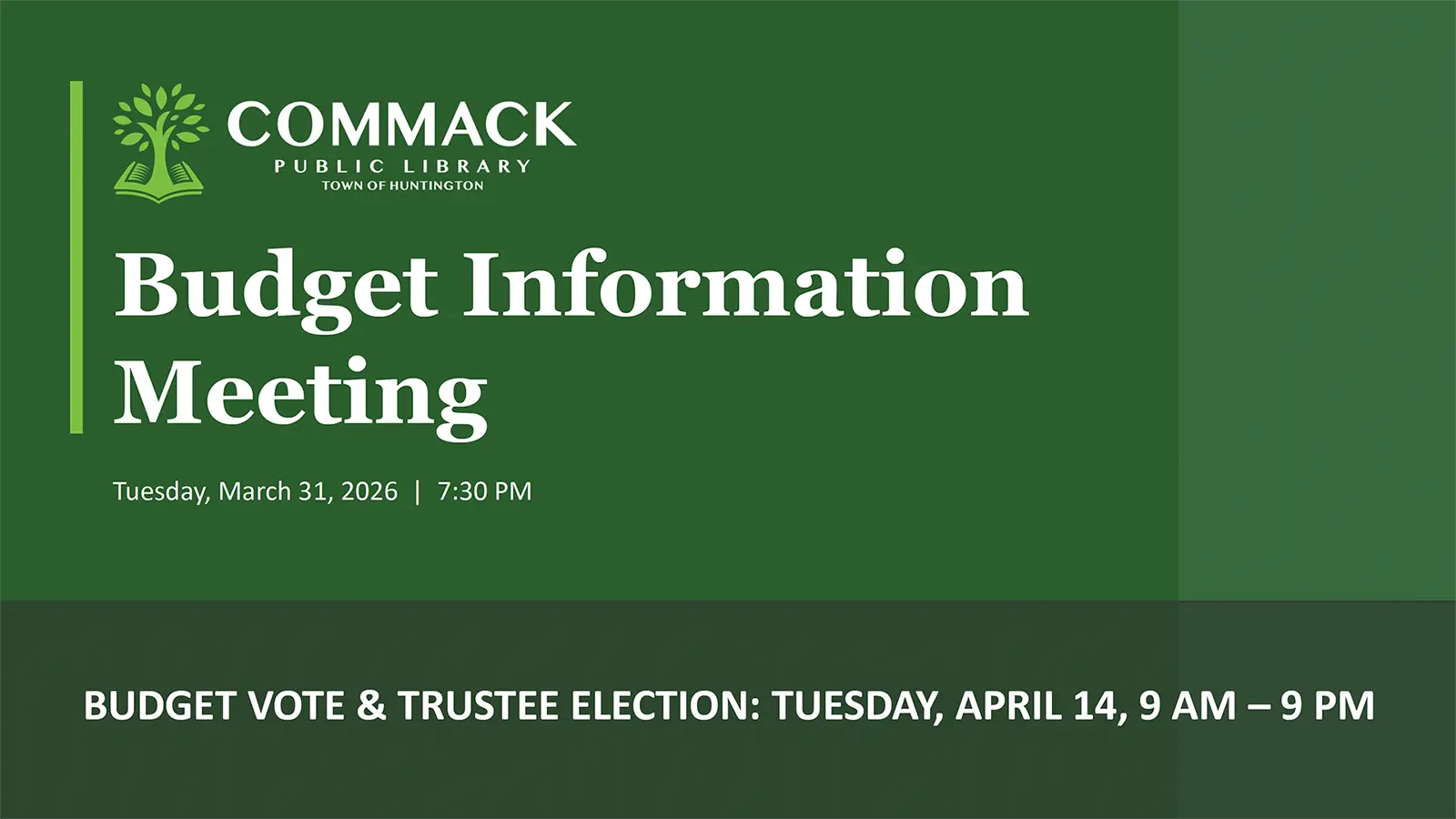 BUDGET INFORMATION MEETING •Tuesday, March 31st at 7:30 PM